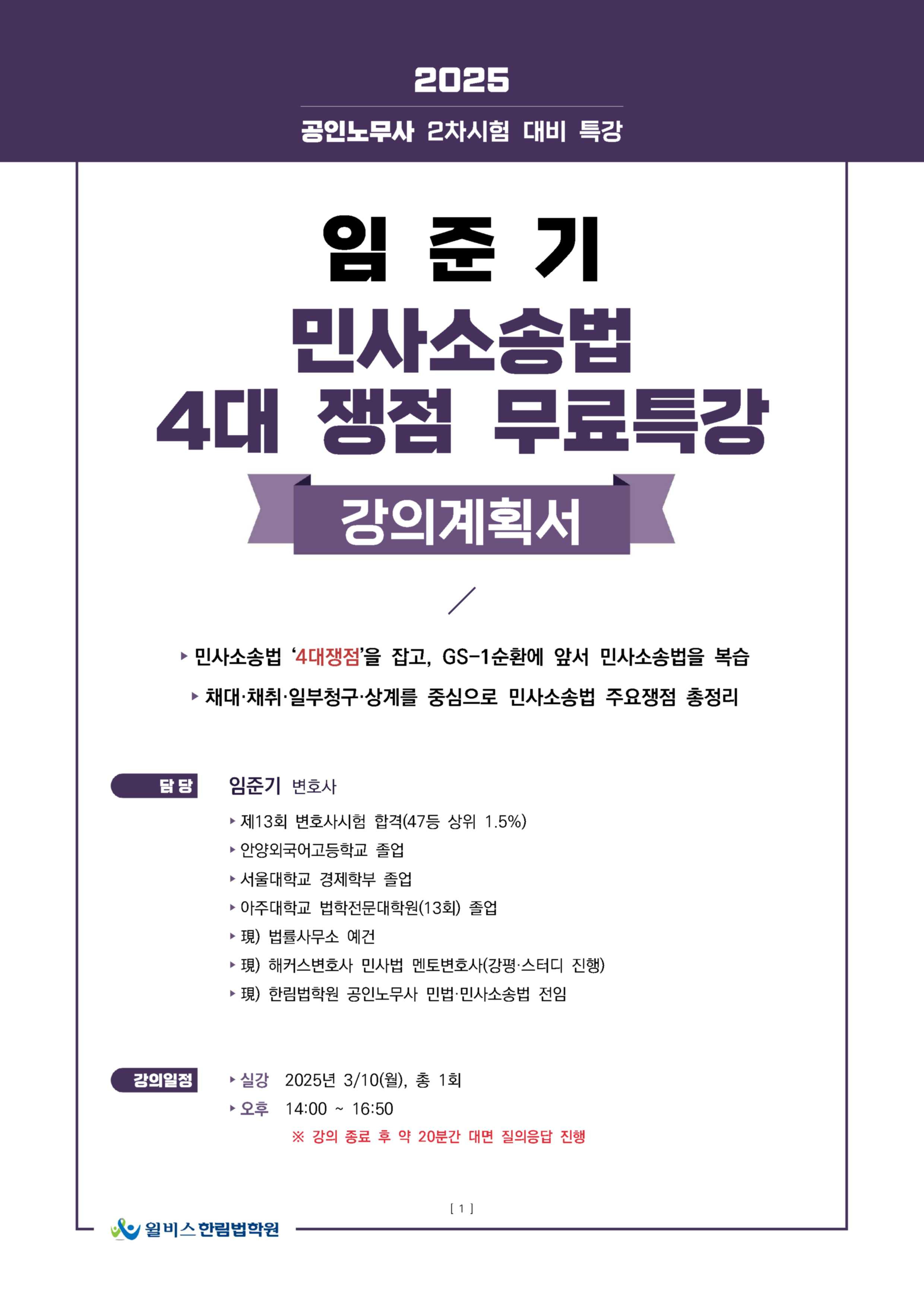[무료강의] 임준기 변호사 📢 2차 민사소송법 - 4대쟁점 특강 (리마인드) 작성자한림법학원|작성시간25.03.26|조회수327 목록 댓글 0 글자크기 작게가 글자크기 크게가 ▼ 2025대비 공인노무사 2차 민사소송법 4대쟁점 특강 ✔ 자료 다운 받기 다음검색 현재 게시글 추가 기능 열기 북마크 공유하기 신고 센터로 신고 댓글 댓글 0 댓글쓰기 답글쓰기 댓글 리스트