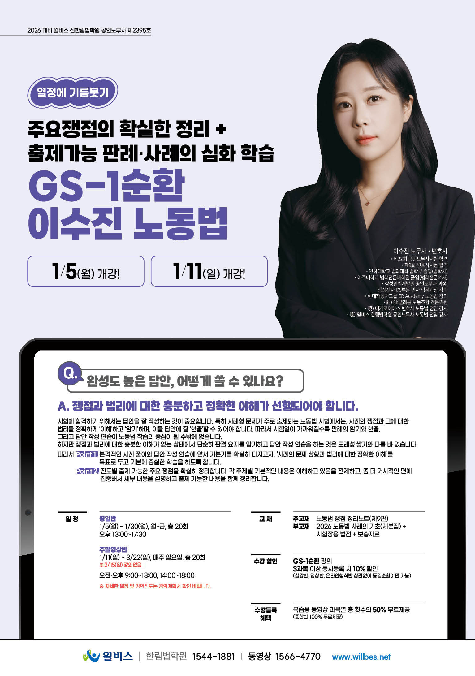 2026 2차 GS-1순환 이수진 노동법 - 1/5(월), 1/11(일) 개강 작성자한림법학원|작성시간25.12.26|조회수453 목록 댓글 0 글자크기 작게가 글자크기 크게가 다음검색 현재 게시글 추가 기능 열기 북마크 공유하기 신고 센터로 신고 댓글 댓글 0 댓글쓰기 답글쓰기 댓글 리스트