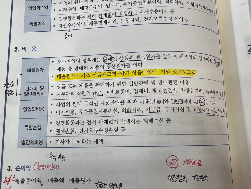 여기 매출원가 개념이 이렇게 나와있는데