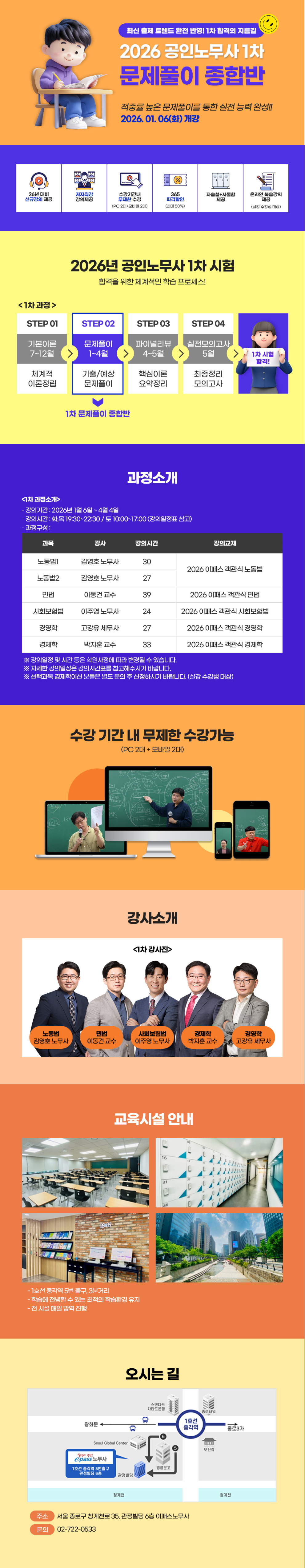2026 공인노무사 1차 문제풀이 종합반 개강!!(26/1/6) 작성자이패스노무사|작성시간15:54|조회수15 목록 댓글 0 글자크기 작게가 글자크기 크게가 [1차 문제풀이 종합반 학원실강 바로가기] ☜ 클릭[1차 문제풀이 종합반 온라인 강의 바로가기] ☜ 클릭 다음검색 현재 게시글 추가 기능 열기 북마크 신고 센터로 신고 댓글 댓글 0 댓글쓰기 답글쓰기 댓글 리스트