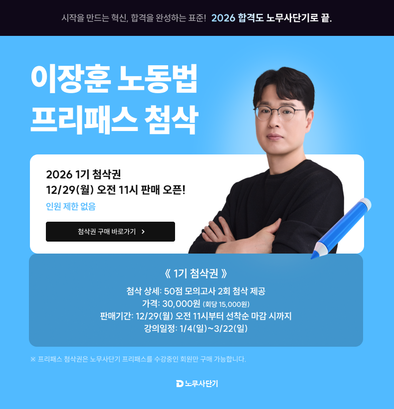 ※ 노동법 1기 첨삭권은 모두 12/29(월) 오전 11시에 동시 오픈됩니다. (김에스더/임재진/이장훈)