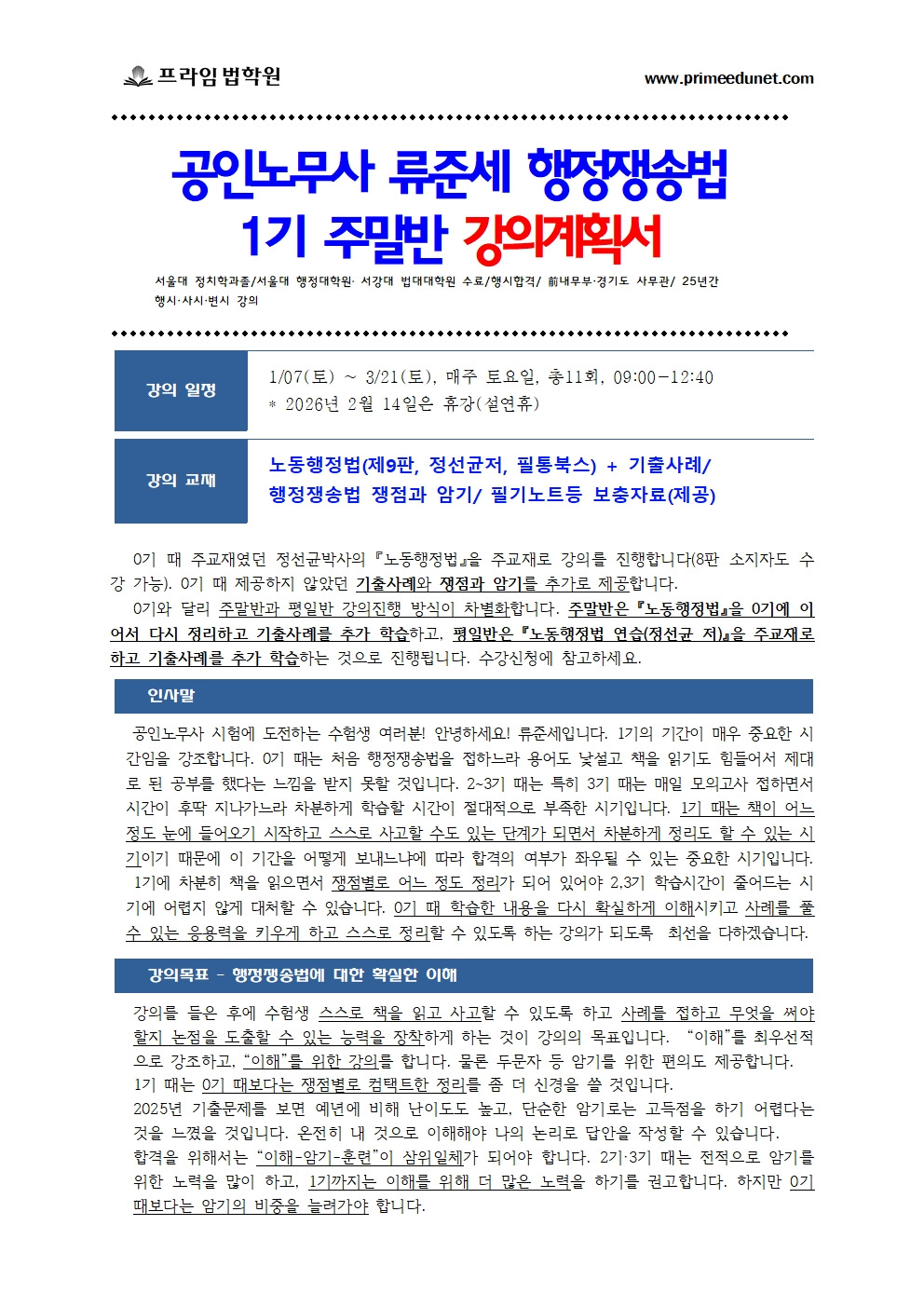 주말반은 『노동행정법』을 0기에 이어서 다시 정리하고 기출사례를 추가 학습하고,