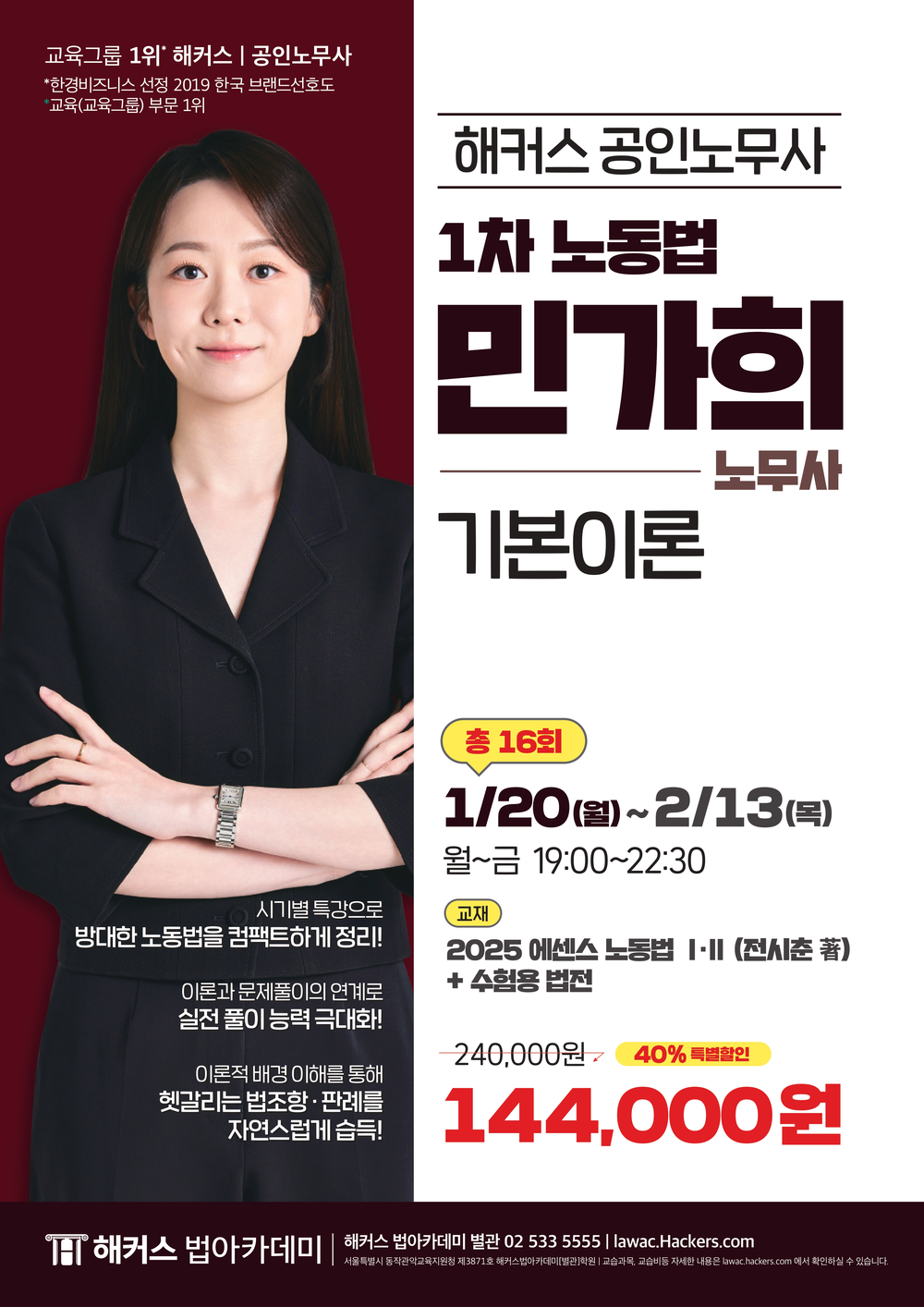 [개강] 2025대비 1차 기본이론 민가희 노동법 - 1/20(월) 개강 작성자해커스|작성시간25.01.08|조회수577 목록 댓글 2 글자크기 작게가 글자크기 크게가 다음검색 현재 게시글 추가 기능 열기 북마크 공유하기 신고 센터로 신고 댓글 댓글 2 댓글쓰기 답글쓰기 댓글 리스트 해당 댓글은 작성자와 운영진만 볼 수 있습니다. 해당 댓글은 작성자와 운영진만 볼 수 있습니다. 댓글 전체보기