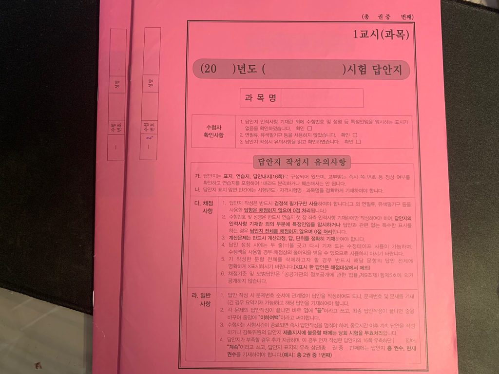 * 실제 시험 답안지 양식 (16매) x2권+ 합법 연습용 답안지 약 2권 조금 넘는 분량5,000원