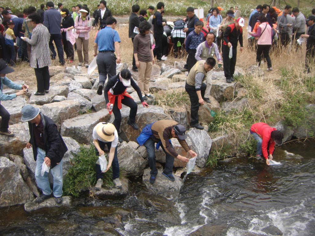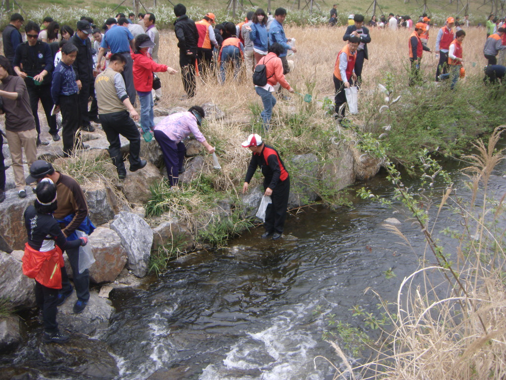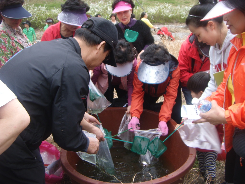 본 행사는 운중천에 민물고기가 개발로인해 사라진 민물고기4종을 복원하였다