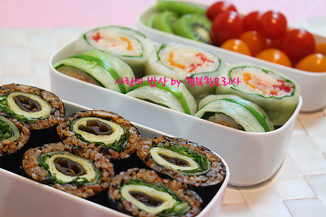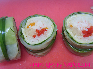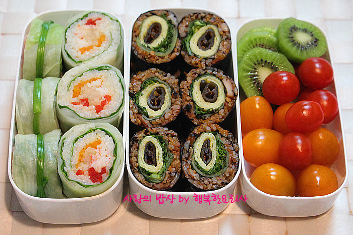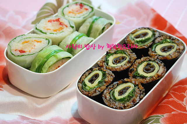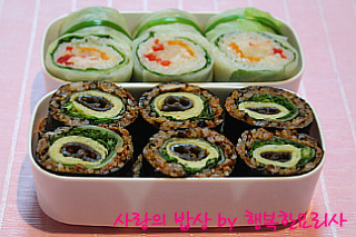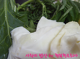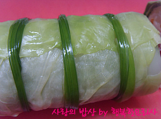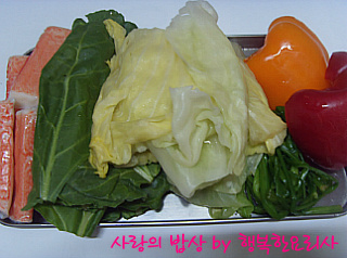 * 양배추말이: 밥,데친양배추,근대 적당량씩,크라비아1팩,