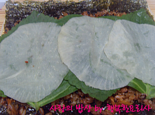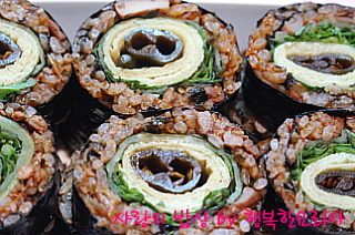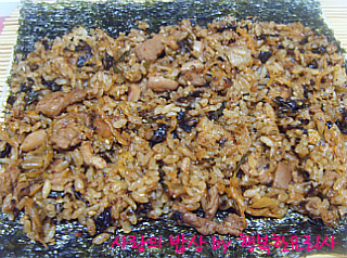 * 김밥: 오삼불고기볶음밥 적당량,깻잎16장,달걀지단4장,