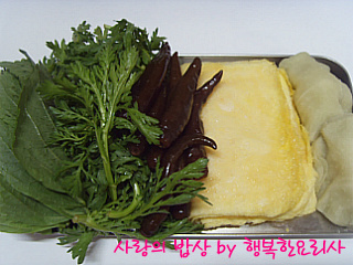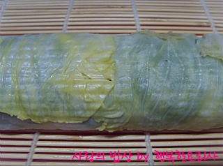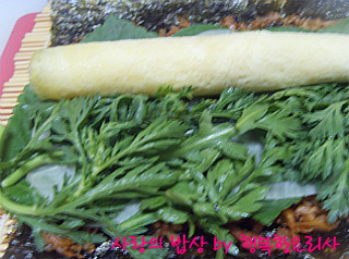 3. 1위에 2와 쑥갓을 올려 단단하게 만다.
