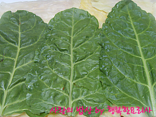 4. 1의 양배추를 김밥크기로 넓게 펴고 근대를 올린다.