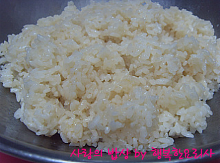 4. 밥에 구운소금과 참기름을 넣어 잘 섞는다.
