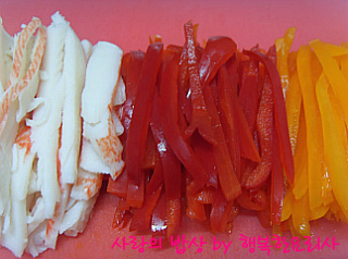 파프리카(빨강 주황)1/2개씩,데친미나리6줄기,