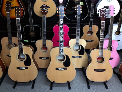 다른 통기타들 사이에서 확연하게 눈에 띄는 화려한 기타!