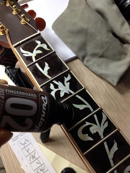 통기타 지판을 클리닝하면 조금 건조해지기 때문에 유분공급을 해주는게 좋습니다.
