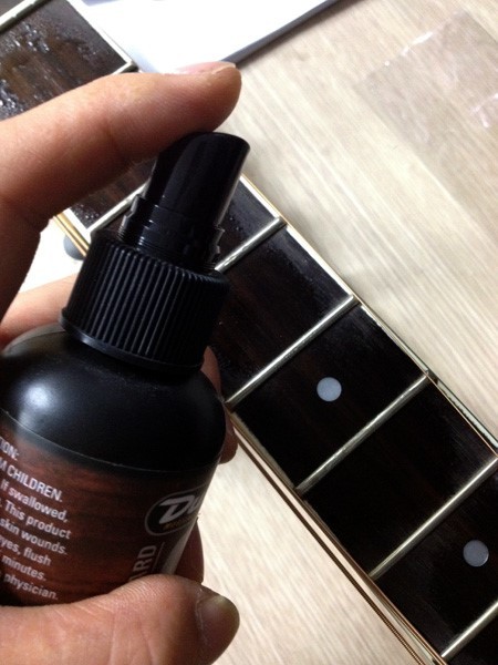 이제 핑거보드 컨디셔너 혹은 렘오일로 지판을 닦아줍니다.