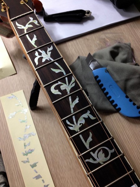 인레이스티커가 들어왔는데 통기타이야기가 한번 붙여봐야죠!