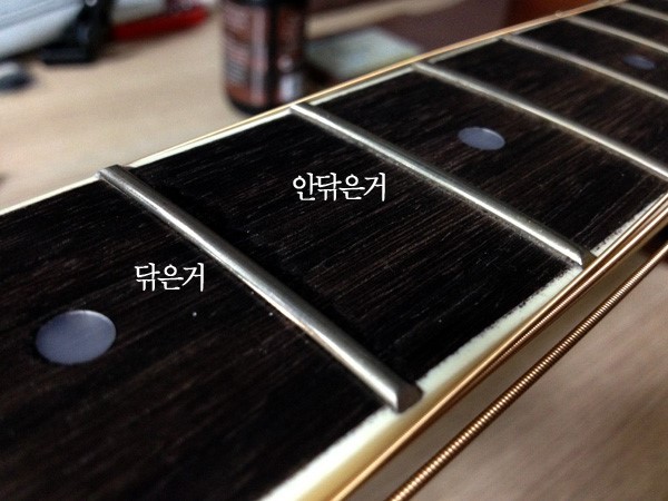 위 사진 보면 좀 차이가 보이시죠? 앞프렛은 칫솔로 잘 닦고, 뒷프렛은 안닦은거예요.