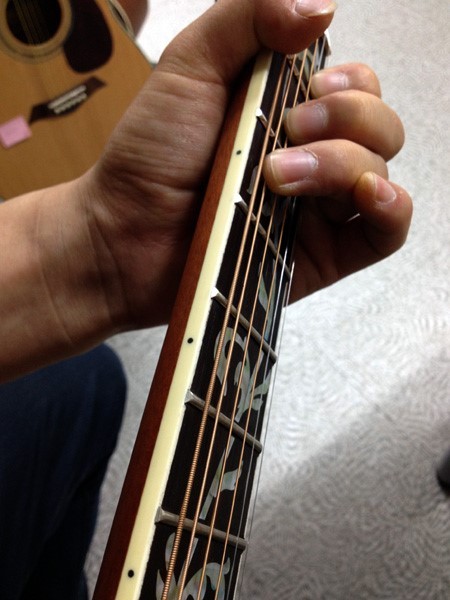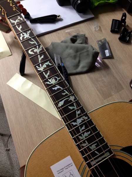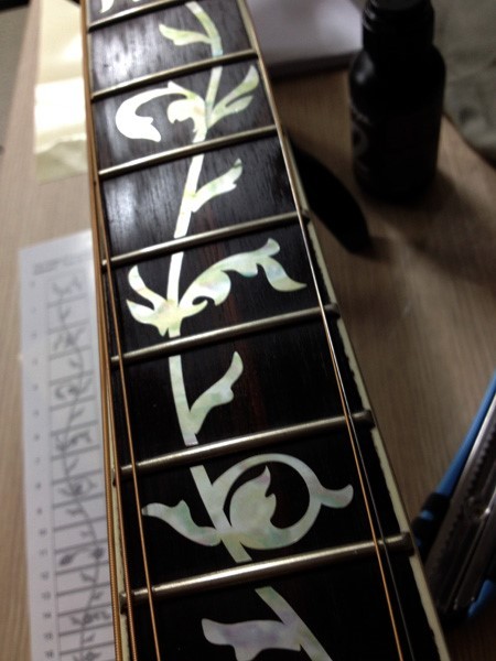 그래서 테스트 통기타 카운티스의 D-9지판에 인레이스티커를 붙여보기로 했습니다.