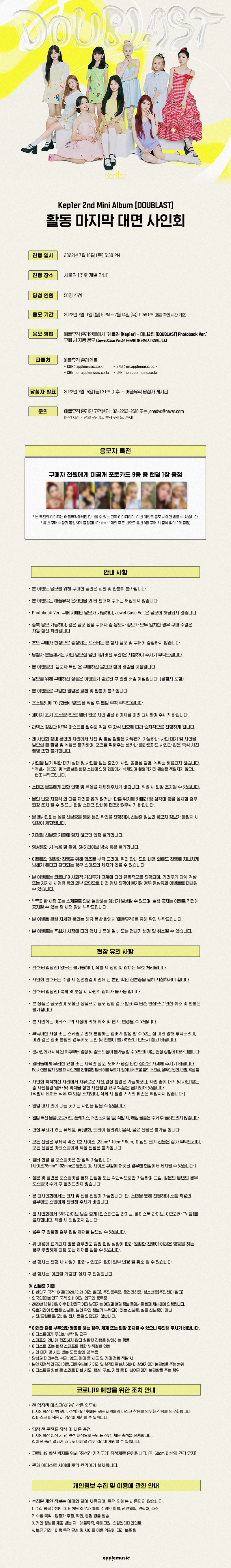 Kep1er The 2nd Mini Album 'DOUBLAST' 발매 기념 대면 팬 사인회 안내_애플뮤직 (국내 마지막)