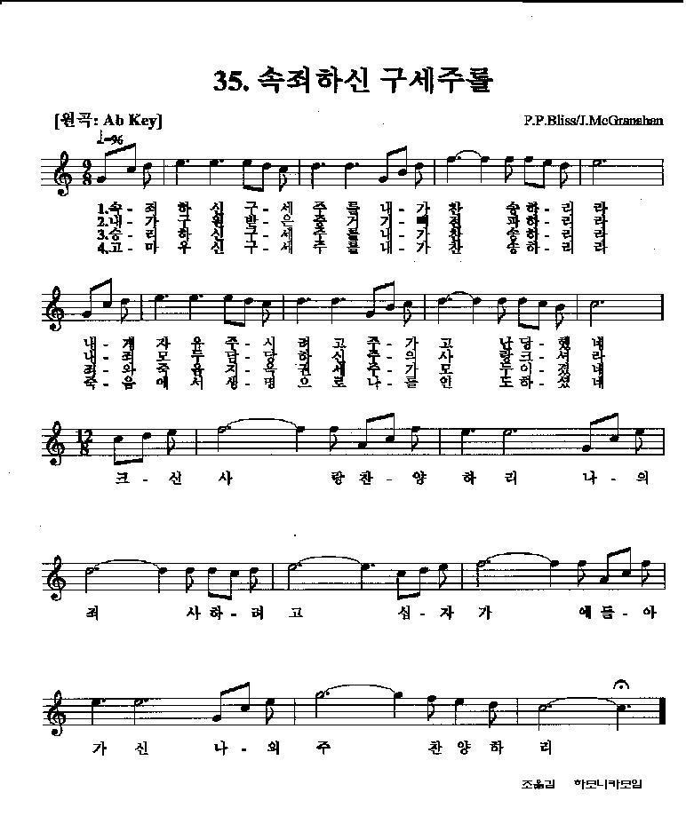 찬송가35장부터는 다장조로 옮긴 악보를 같이 올립니다.
