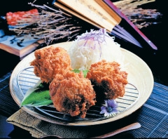 고로케의 생명은 역시 기름솥의 기름 발화점을 높여 보다 높은 온도에서 단시간에 튀겨내 겉의 빵가루는 바삭하고 속은 부드러운 맛을 내는 데 있습니다.