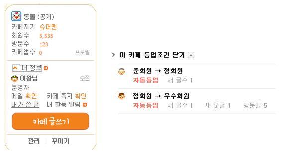 게시물 1개(가입인사), 댓글 1개, 방문 5회 이상이면 우수회원으로 자동 등업되며,