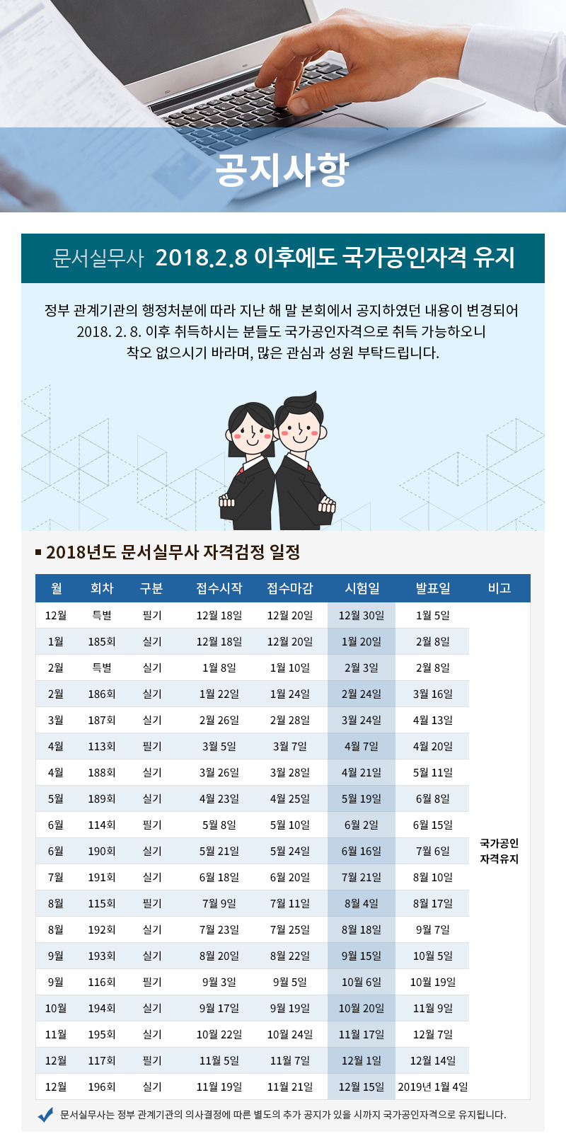 2018년 국가공인 문서실무사 일정 안내(수정) 작성자개구둥이|작성시간18.01.10|조회수2,722 목록 댓글 0 글자크기 작게가 글자크기 크게가 다음검색 현재 게시글 추가 기능 열기 북마크 공유하기 신고 센터로 신고 댓글 댓글 0 댓글쓰기 답글쓰기 댓글 리스트