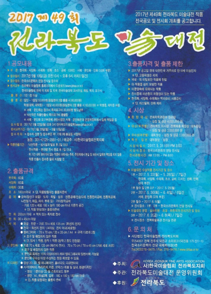 ◎ 2017 제49회 전라북도 미술대전 접수