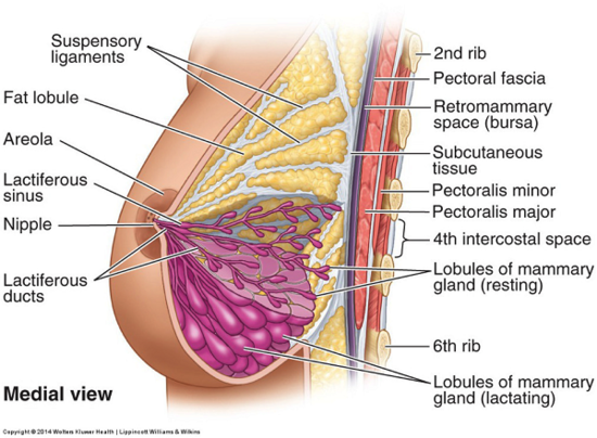 대흉근(pectoralis major)은 부채 모양의 근육이고 해부학적으로 두 부분으로 이루어져 있다.