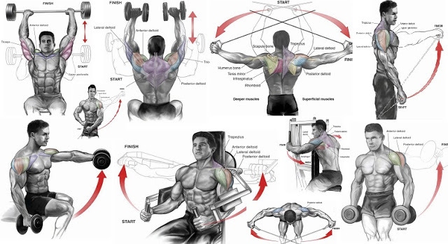 어깨 꼭대기의 볼록한 부분)에 부착되 어 있고 팔을 몸의 측면으로 들어 올린다(어깨 외전).