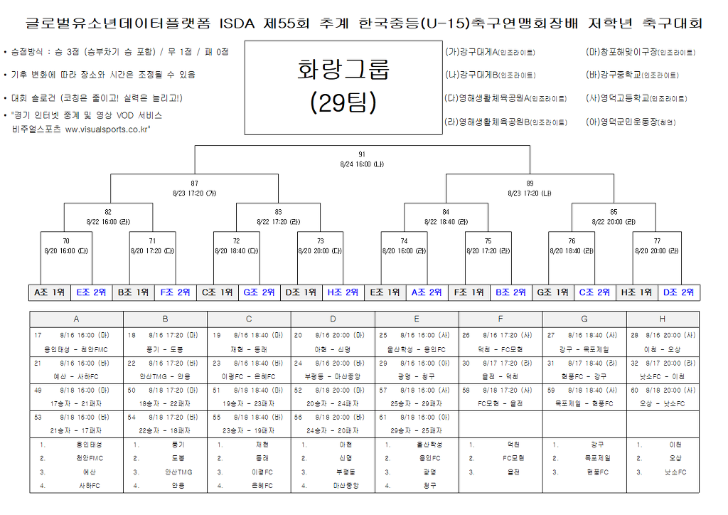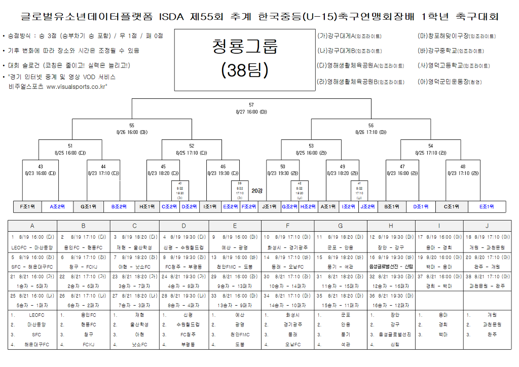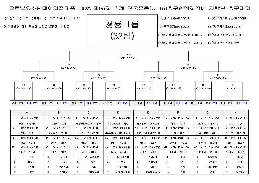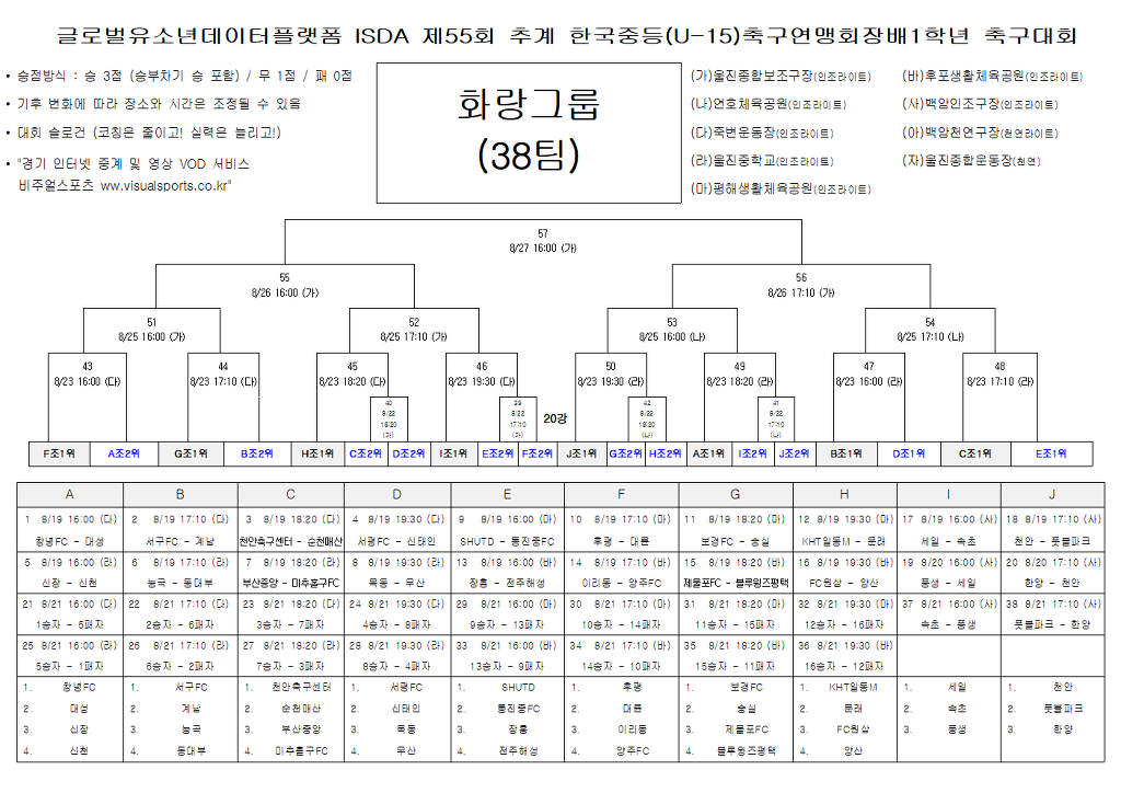 [2019년도 추계연맹전] 2019 제55회 추계 한국중등(U-15)축구연맹전 및 저학년 축구대회 대진표 공지
