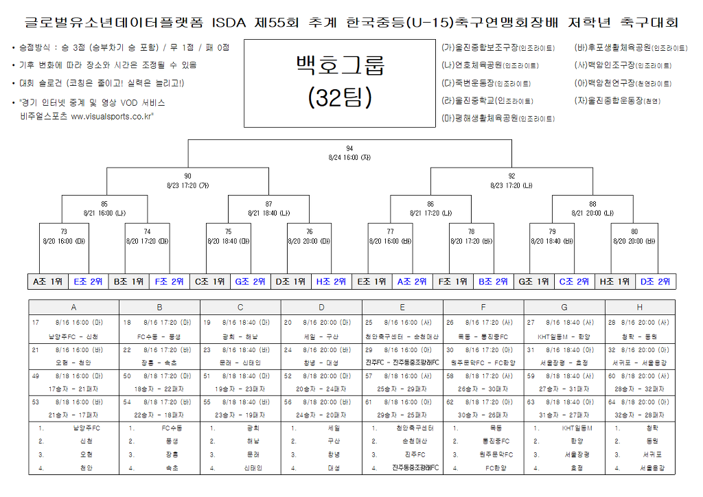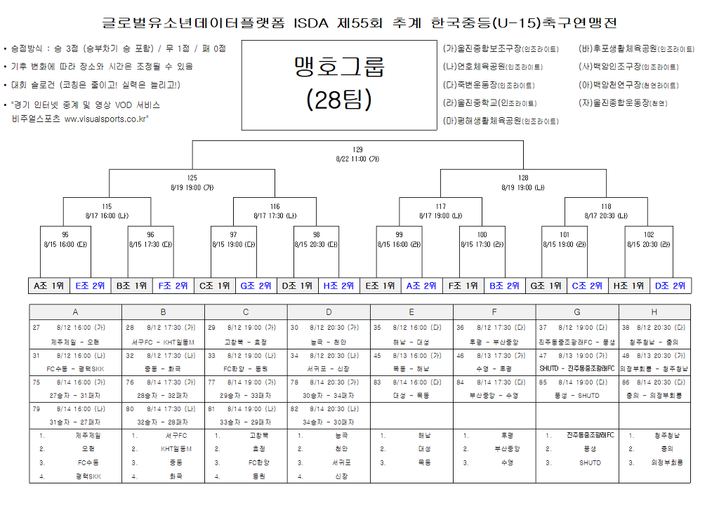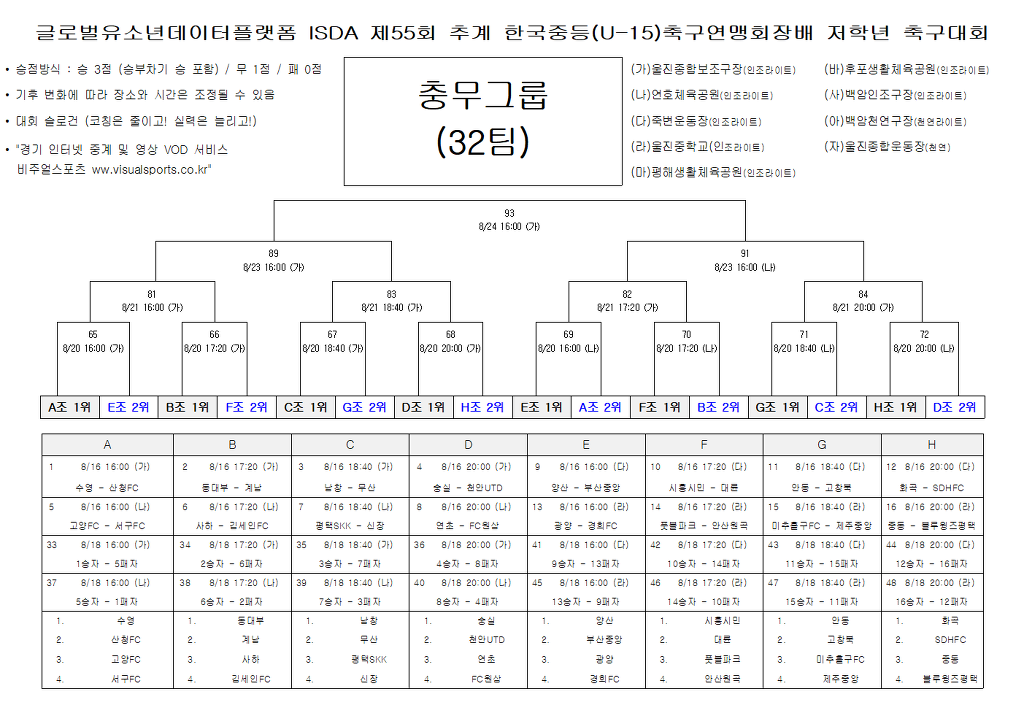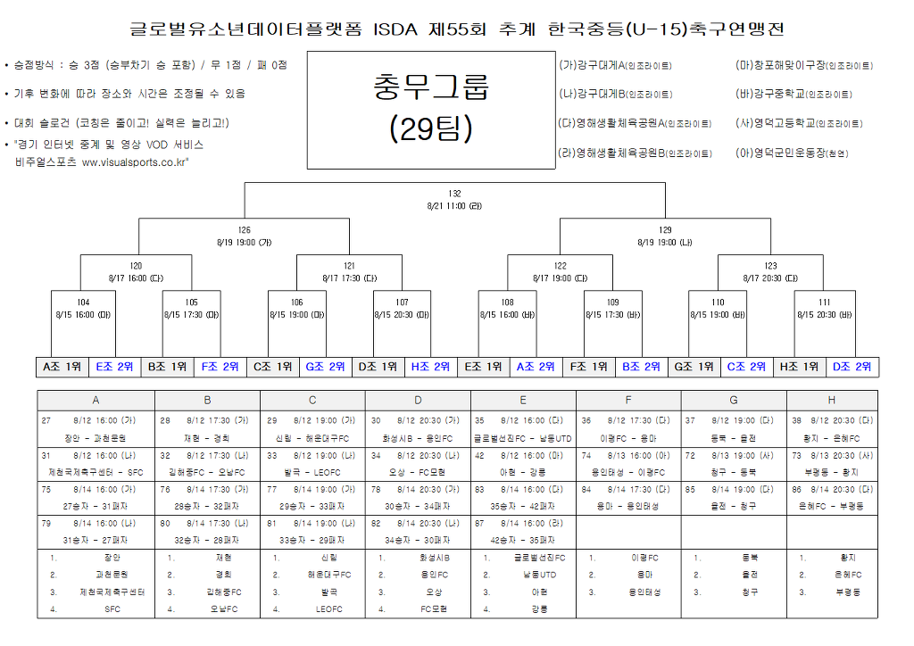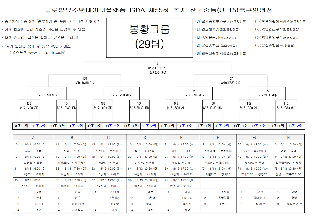 [2019년도 추계연맹전] 2019 제55회 추계 한국중등(U-15)축구연맹전 및 저학년 축구대회 대진표 공지