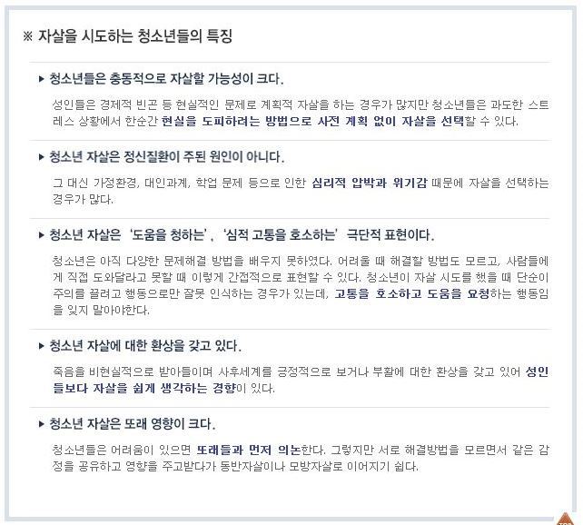 청소년 자살은 우울증 등의 지속적인 증세 끝네 자살을 택하는 성인자살과는 달리