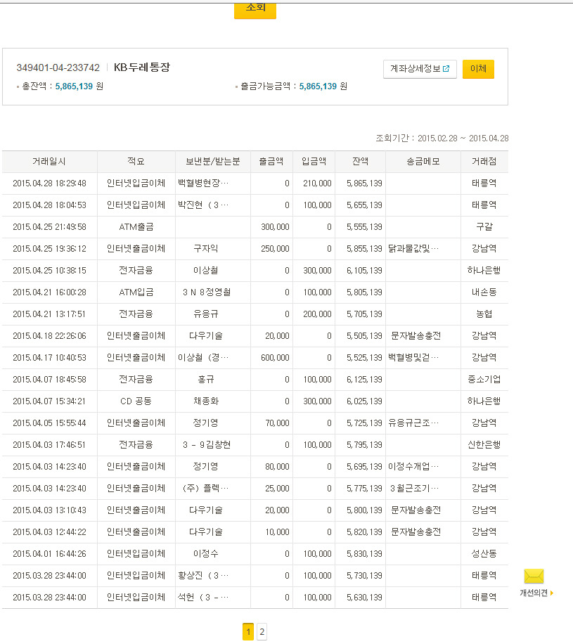 *추후에 류성일군이 학교정문앞에서 벌어진 뒷풀이 1차(총 19명)에서 음식과 술에 대한 금액을 냈습니다.