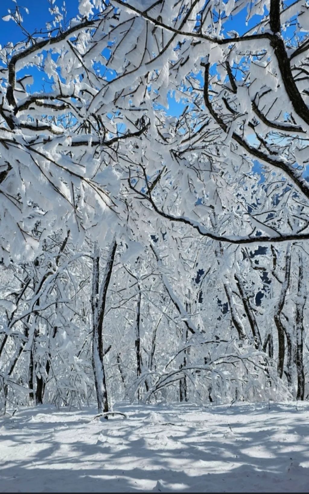 눈꽃 산행의 백미 하얗게 뒤덮인 능선 위로 풍력발전기가 웅장하게 서 있는 풍경은 마치 겨울 동화 속 장면과도 같습니다. 눈꽃이 가득 핀 숲길과 드넓은 고지대는 백패킹과 캠핑을 즐기기에 더없이 좋은 무대가 되어줍니다.