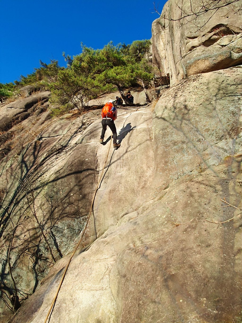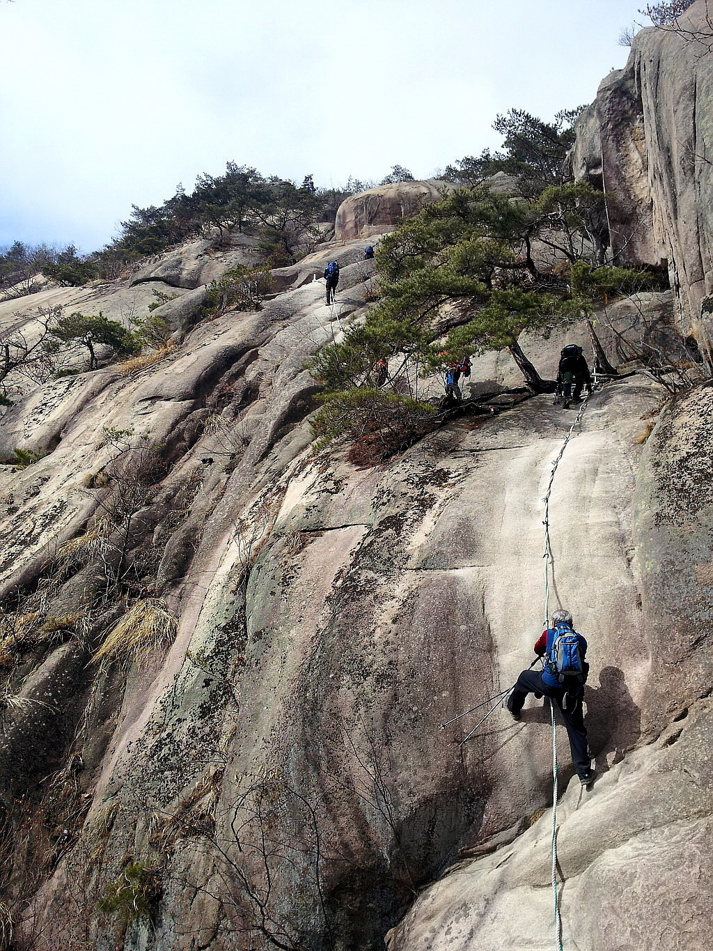 이 " 75m 암벽코스" 라 이름붙여진 암릉길은 출발 직후 약 20m까지가 특히 가파르고 까다롭다
