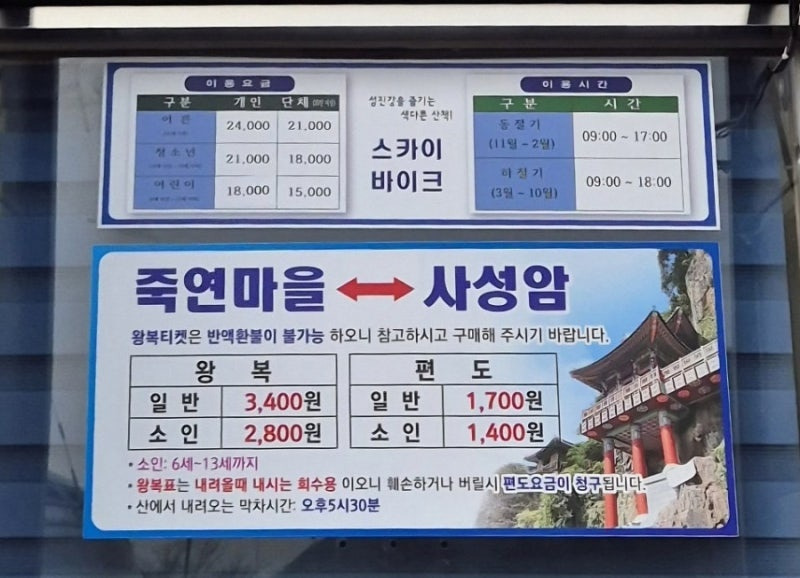 ※B코스 사성암 버스 비용은 본인 부담입니다 (왕복 3천4백원)