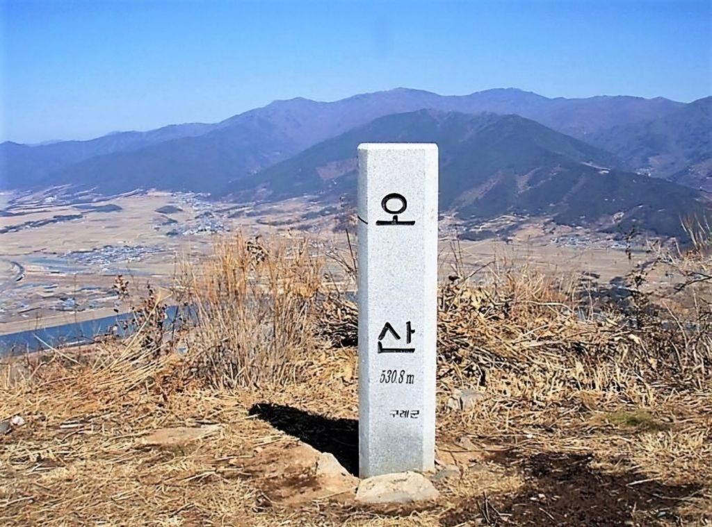 오산은 지리산을 마주하고 있는 해발 531m의 흐릿한 산으로 자라 모양을 하고 있으며, 높지도 험하지도 않고 비경이 많아 가족동반이나 단체소풍 코스로 사랑을 받아왔으며, 죽연마을에서부터 지그재그로 산길을 돌아오다 보면 발아래 감도는 섬진강 물에 눈이 부시고 더 높이 오르면 지리산줄기를 배경으로 한 구례 일대의 전경이 한폭의 그림처럼 펼쳐진다.