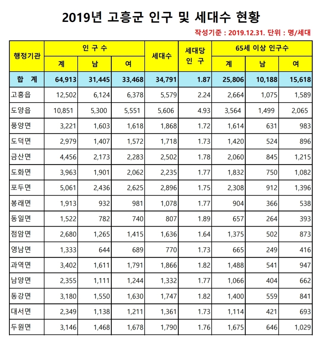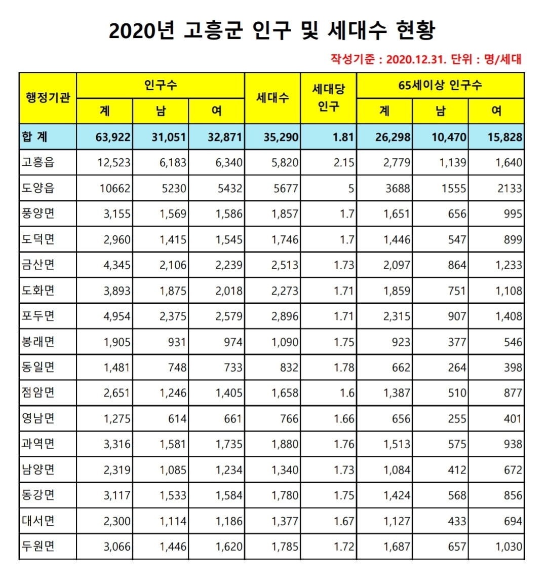 고흥군 인구-2019년,2020년 작성자박영민|작성시간21.01.15|조회수196 목록 댓글 0 글자크기 작게가 글자크기 크게가 다음검색 현재 게시글 추가 기능 열기 북마크 공유하기 신고 센터로 신고 댓글 댓글 0 댓글쓰기 답글쓰기 댓글 리스트