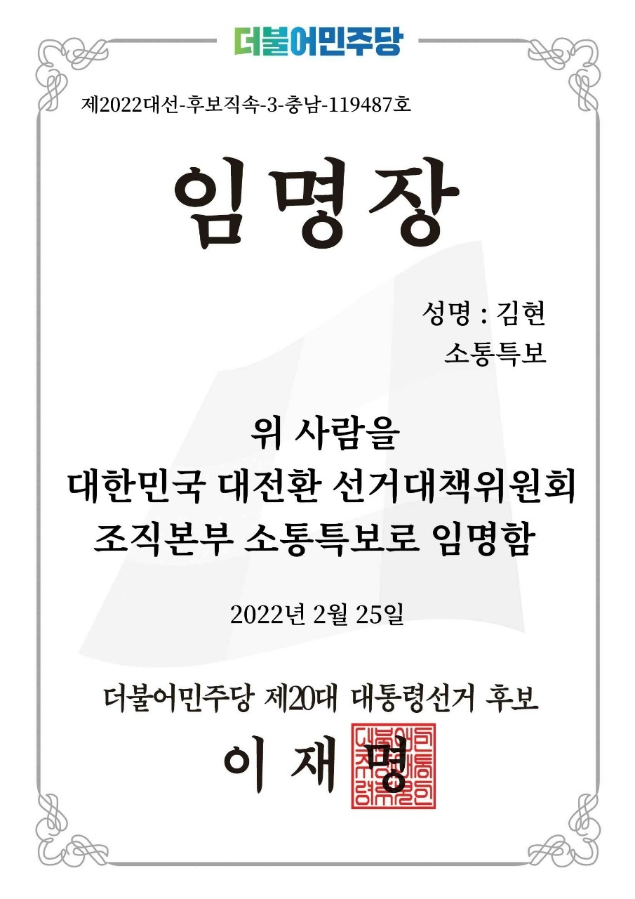 ● 현) 더불어민주당 대한민국 대전환 선거대책위원회