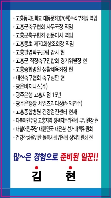 김현(가 선거구 – 고흥읍, 점암면, 영남면, 두원면)