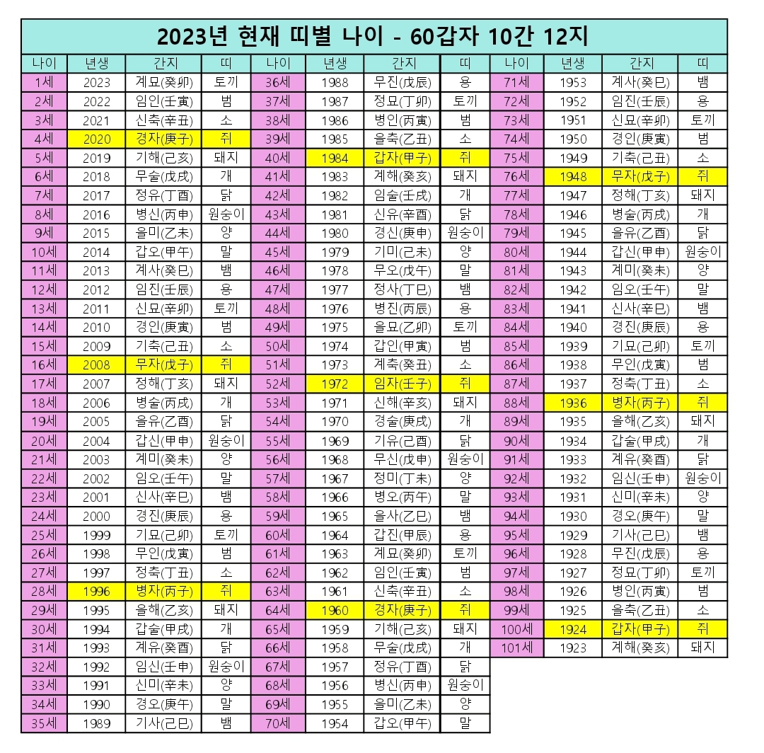 2023년 계묘년(癸卯年)토끼띠 띠별 나이,60갑자 10간 12지 작성자박영민|작성시간23.02.05|조회수32 목록 댓글 0 글자크기 작게가 글자크기 크게가 다음검색 현재 게시글 추가 기능 열기 북마크 공유하기 신고 센터로 신고 댓글 댓글 0 댓글쓰기 답글쓰기 댓글 리스트