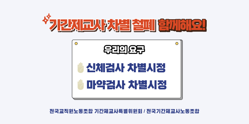 이에 불필요한 채용절차로 인해 기간제교사의 노동권과 교육권을 제약하는 교육부의 채용 신체검사와 마약검사 요구에 반대하고자 한다.