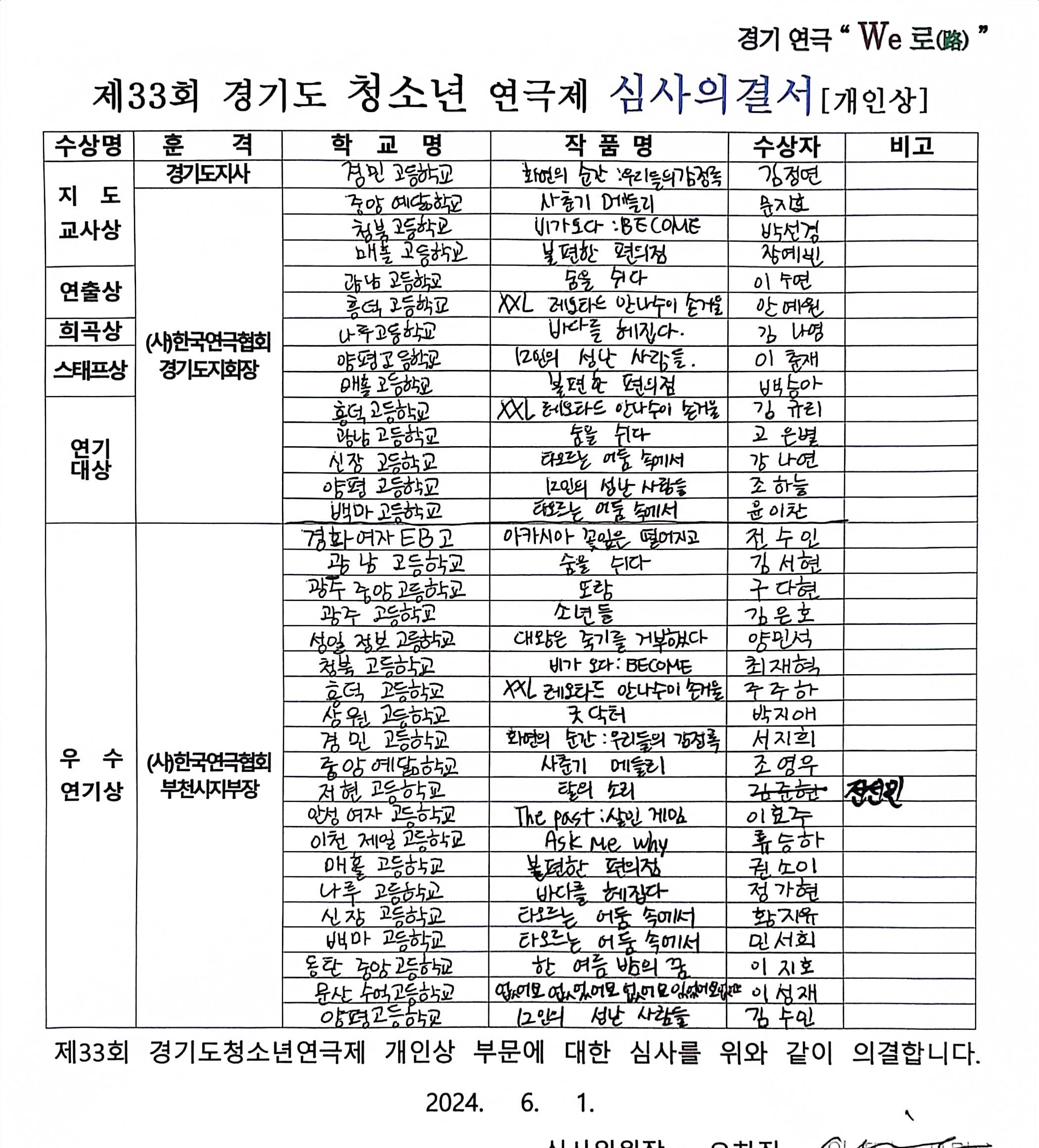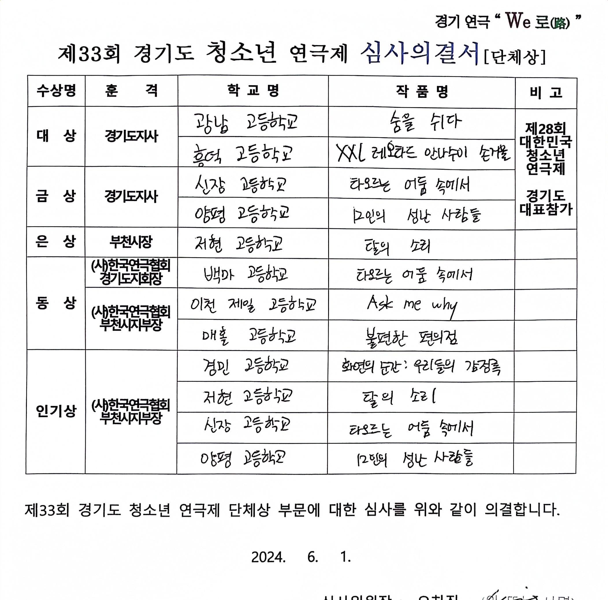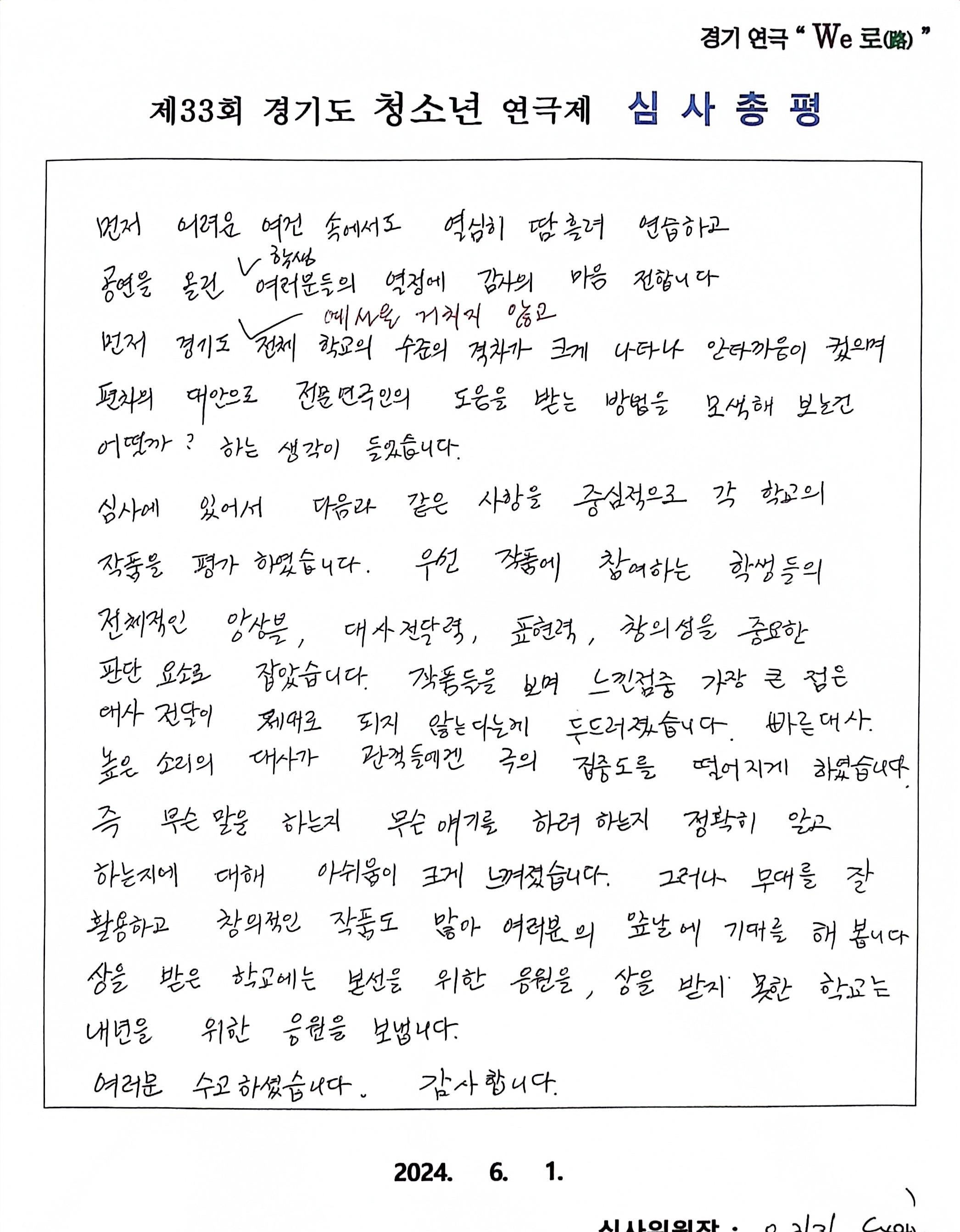 제33회 경기도청소년연극제 심사의결 및 총평 작성자연극협회|작성시간24.06.03|조회수244 목록 댓글 0 글자크기 작게가 글자크기 크게가 다음검색 현재 게시글 추가 기능 열기 북마크 공유하기 신고 센터로 신고 댓글 댓글 0 댓글쓰기 답글쓰기 댓글 리스트