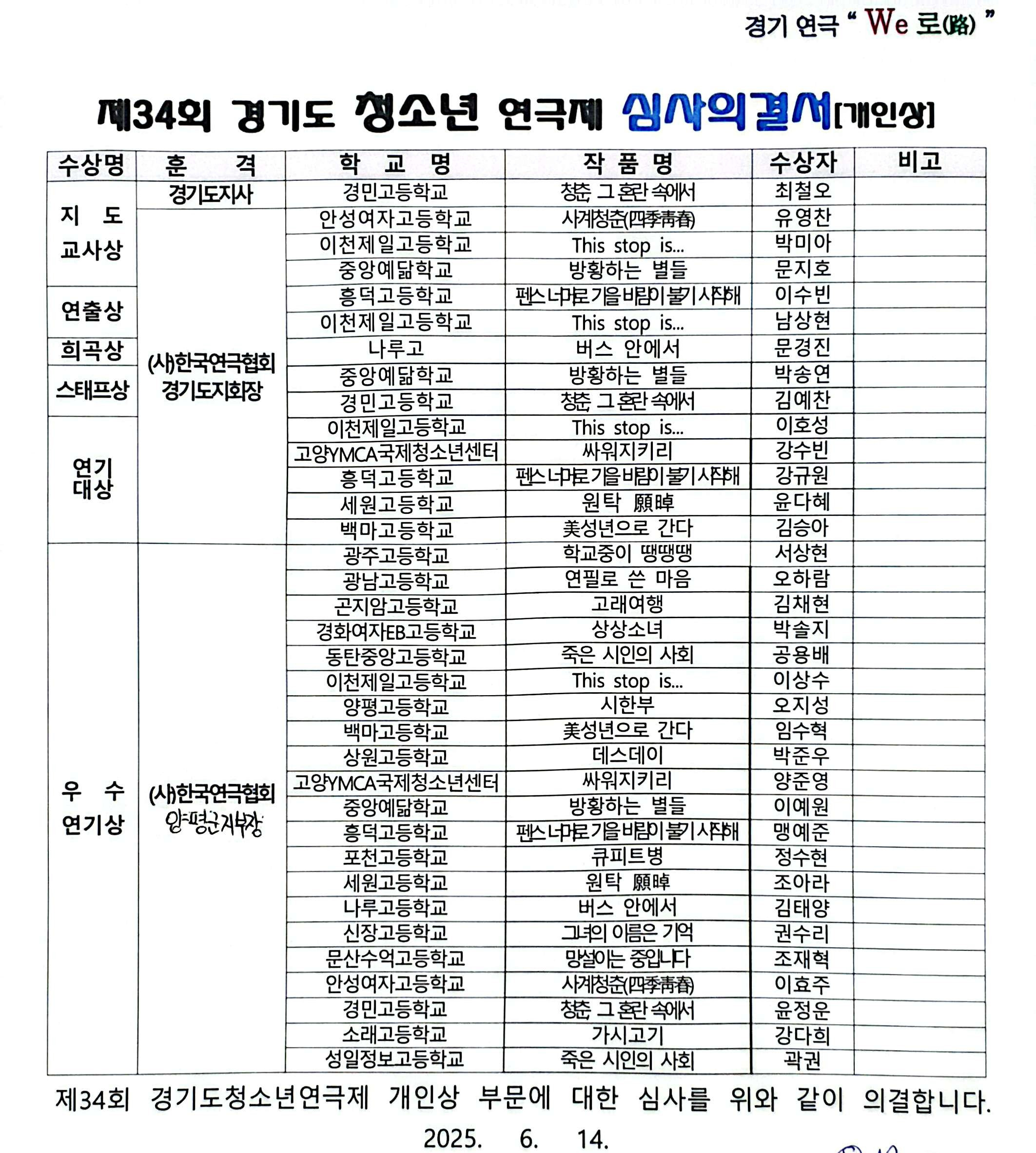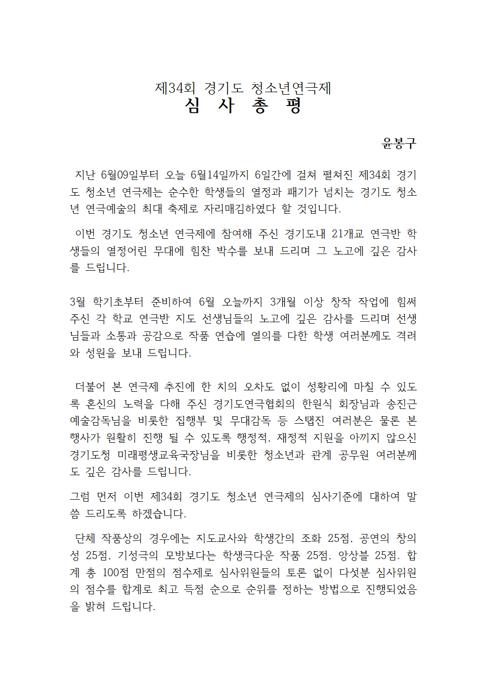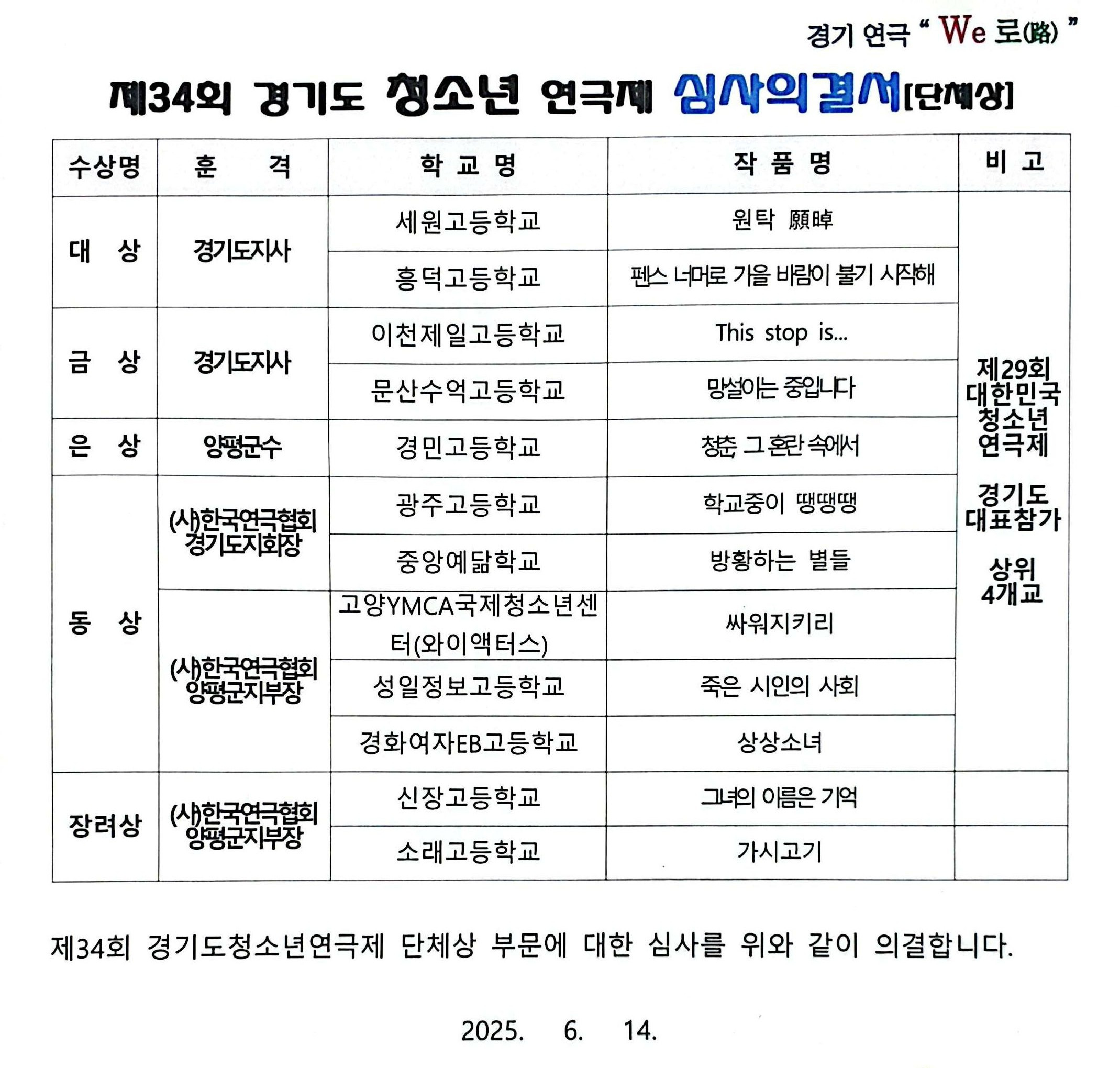제34회 경기도청소년연극제 심사의결 작성자연극협회|작성시간25.08.09|조회수28 목록 댓글 0 글자크기 작게가 글자크기 크게가 다음검색 현재 게시글 추가 기능 열기 북마크 공유하기 신고 센터로 신고 댓글 댓글 0 댓글쓰기 답글쓰기 댓글 리스트