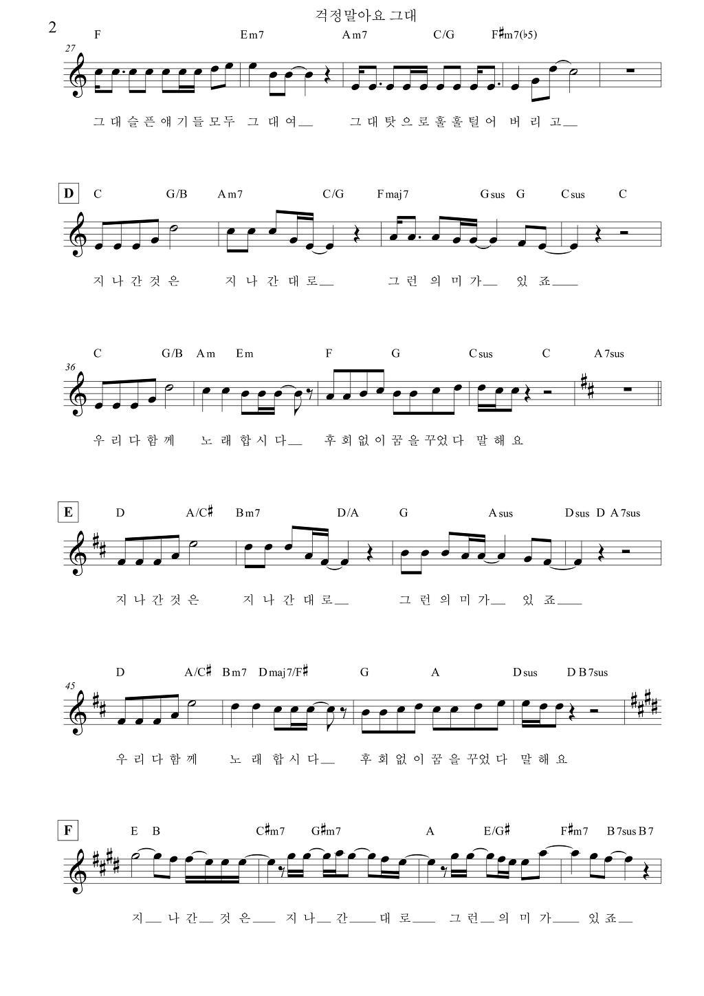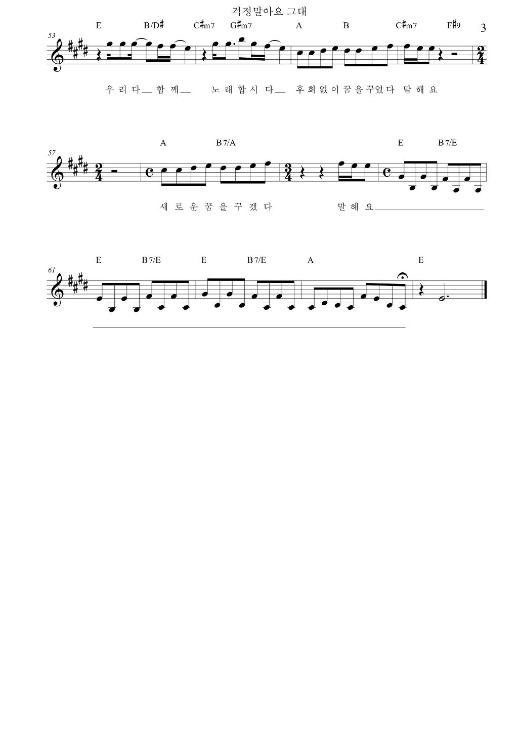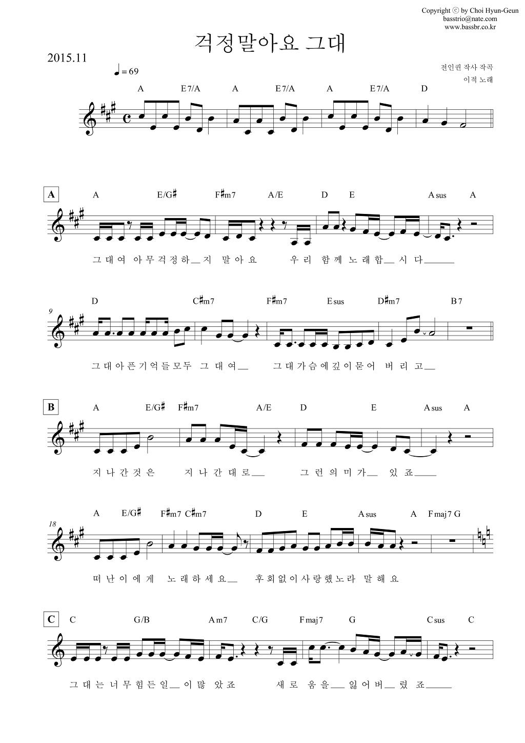 걱정말아요그대- 이적 작성자카르카시(옥)|작성시간16.04.25|조회수1,483 목록 댓글 3 글자크기 작게가 글자크기 크게가 다음검색 현재 게시글 추가 기능 열기 북마크 공유하기 신고 센터로 신고 댓글 댓글 3 댓글쓰기 답글쓰기 댓글 리스트 작성자카르카시(옥) 작성자 본인 여부 작성자 | 작성시간 16.04.25 좀 늦었네요 죄송합니다.클릭하시면 더 선명합니다. 작성자카르카시(옥) 작성자 본인 여부 작성자 | 작성시간 16.04.25 총 3장입니다 작성자탑벨류(윤준영) | 작성시간 16.04.27 악보가 선명해서 좋네요.. 펌합니다.. 앞으로도 계속 부탁드려요..~` 댓글 전체보기