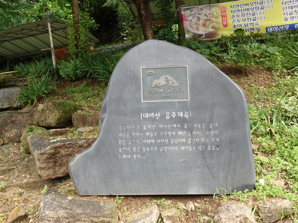 대야산 용추계곡은 경북쪽에 있고 충북쪽으로 선유구곡, 화양구곡을 두고 있어 여름철에는 많은 등산객들이 찾고 있다. 깎아지른