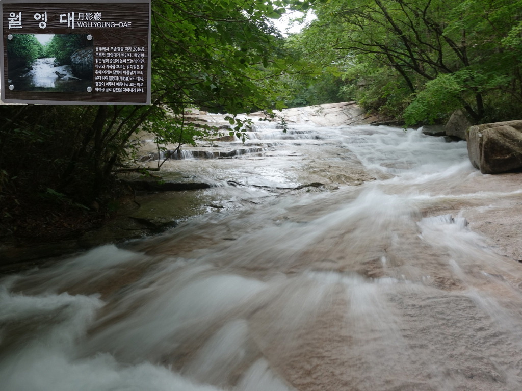 흘러내리면서 아랫용추를 빚는다.용추에서 오솔길을 따라 20분쯤 오르면 월영대가 반긴다. 달 뜨는 밤이면, 바위와 계곡에 달빛이