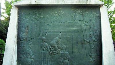 수항단(受降壇)에서 청나라 태종에게 굴욕적인 항례(降禮 : 항복의 의식, 당시 인조는 청 태종에게