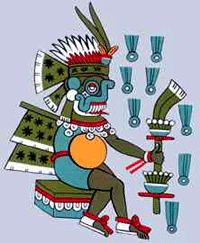 아즈텍 족과 북미 푸에블로 인디언들에게 뱀은 땅의 변화를 의미했는데, 그것은 뱀이 옥수수와 다른 모든 식물의 싹이 트는 땅 속으로부터 기어나오기 때문이었다. 따라서 뱀은 지하의 세력과 인간을 중재하는 존재가 되기도 한다. 반면에 천상의 존재 즉 태양, 구름, 천둥 등과 인간을 중개하는 존재는 주로 새로 묘사된다. 그리고 이 두가지 상징이 합쳐져서 깃털이 달린 뱀이라는 상징이 생겨난다. 이 깃털달린 뱀은 하늘로부터 내려와 대지에 풍요를 가져다 주는 비를 주관하는 존재가 된다.