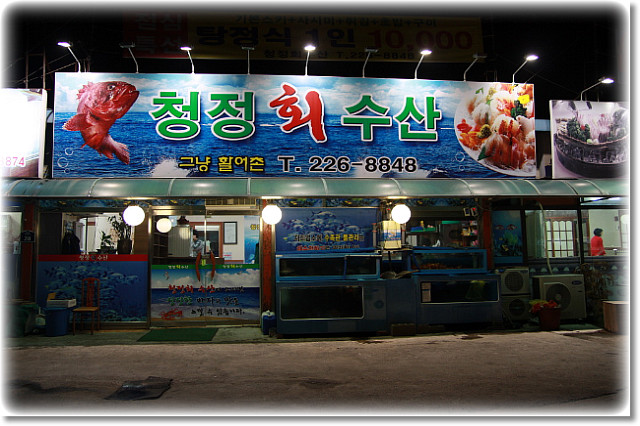 삼천동 농수산물 시장옆 횟집3개라 있습니다. 그중 가운데 집이지요